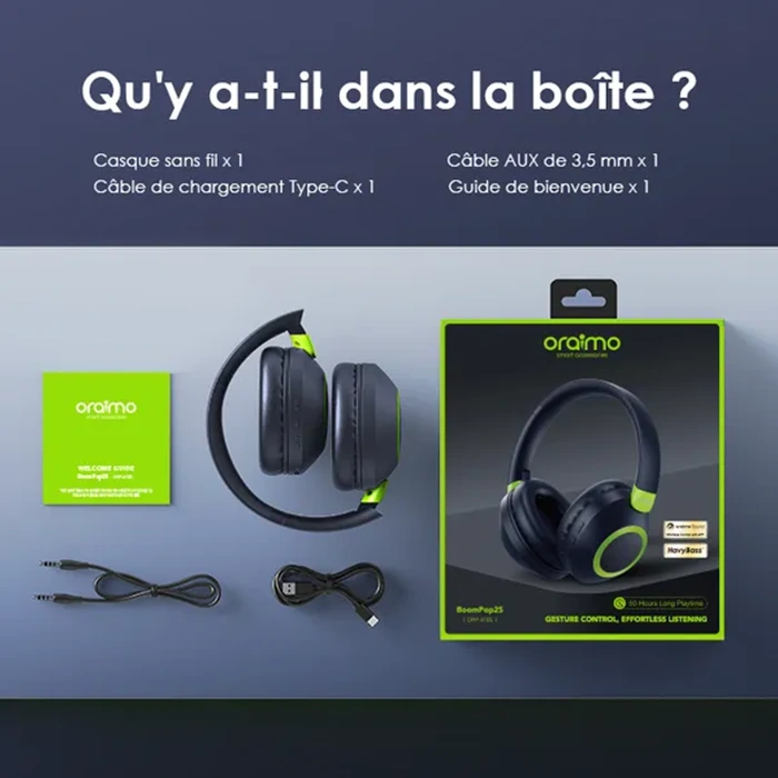 Paramètres du produit oraimo BoomPop2S Écouteurs supra-auriculaires sans fil ENC OHP-610S:
