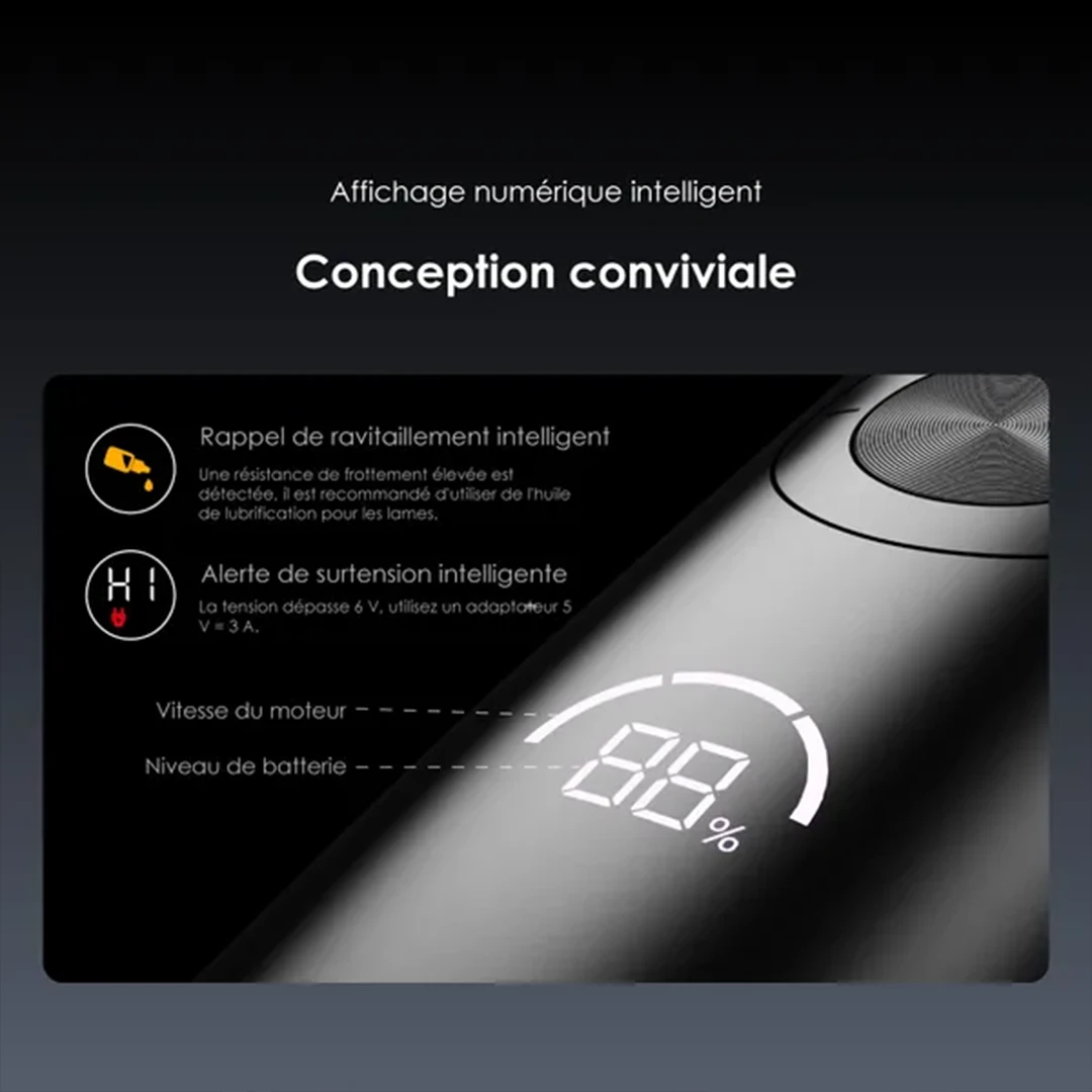 Conçu avec un affichage numérique intelligent, il vous permet de vérifier le niveau de batterie en temps réel.