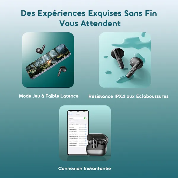 Ouvrez le boîtier et vos écouteurs se connectent instantanément à votre appareil, vous offrant un accès sans effort à votre musique et vos appels.