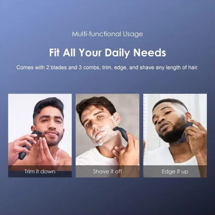 Livré avec 2 lames et 3 peignes, coupez, bordez et rasez n’importe quelle longueur de cheveux.